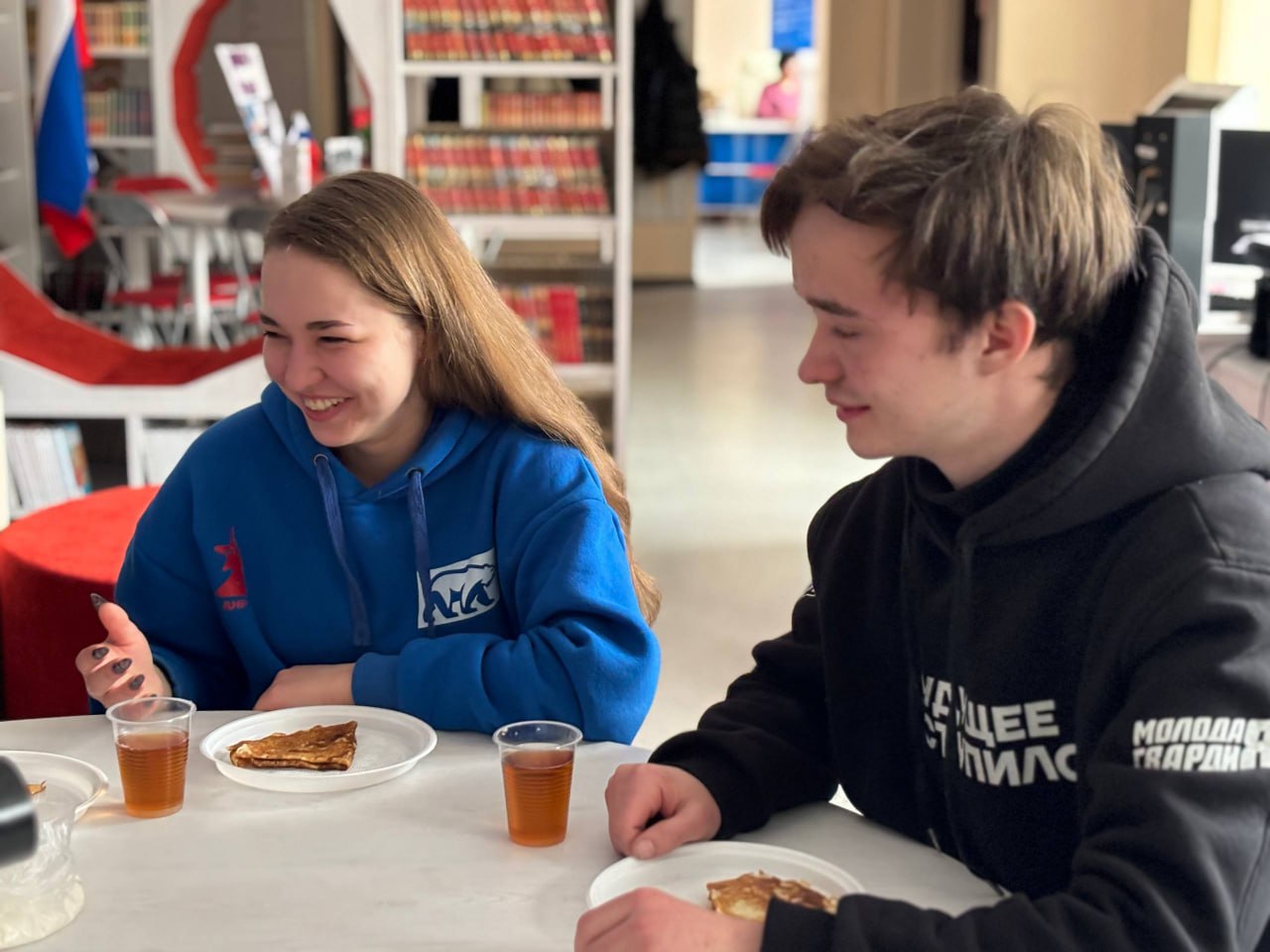 Активисты Снежнянского штаба Молодёжки провели дружеское чаепитие, под руководством студента Снежнянского техникума промышленности и сферы услуг Даниила Корчагина, со вкусными блинами в центральной городской библиотеке.