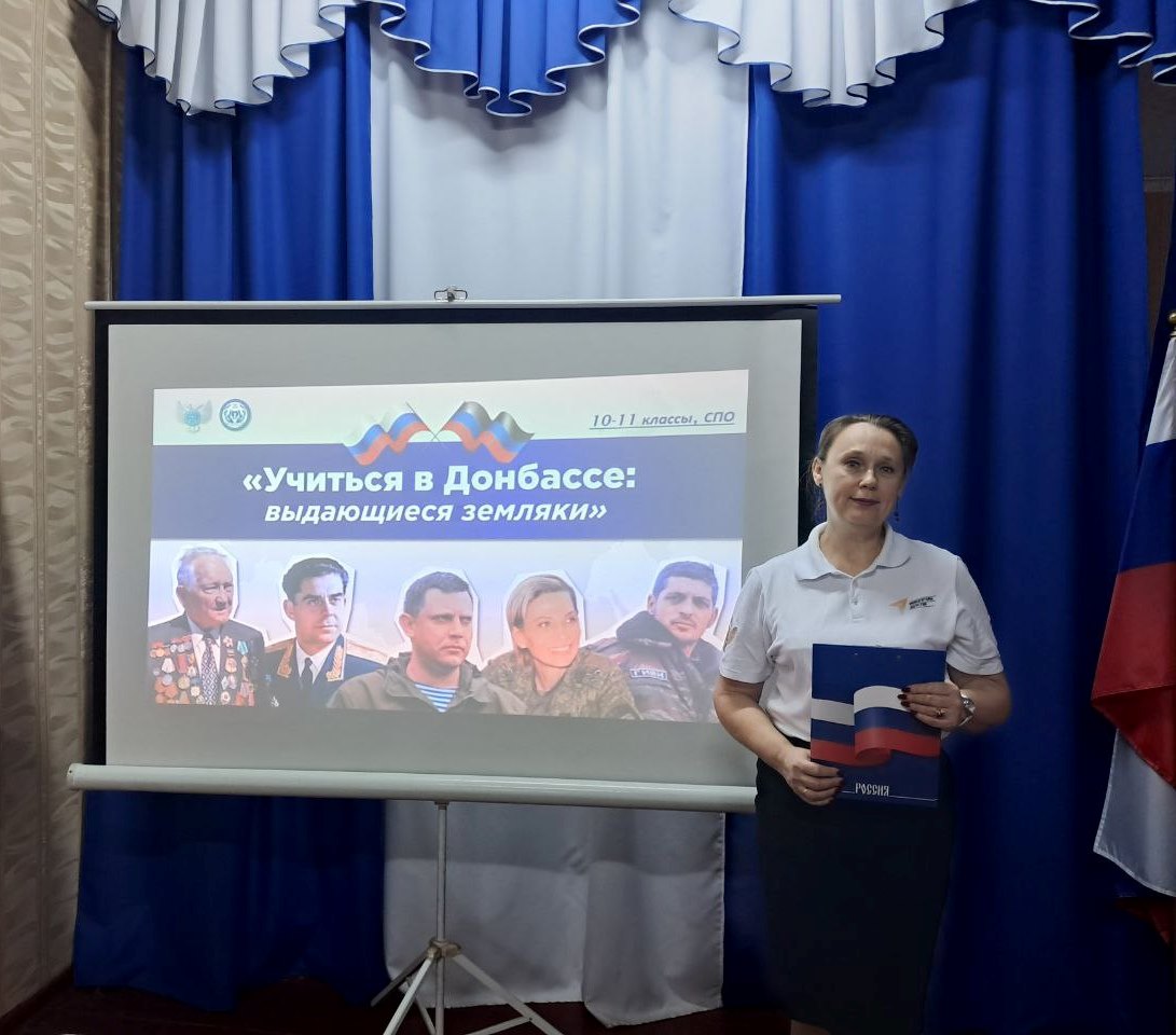 31 октября 2025 года в ГБПОУ «Снежнянский техникум промышленности и сферы услуг» в рамках регионального компонента программы курса внеурочной деятельности "Разговоры о важном" прошло мероприятие по теме: "Учиться в Донбассе: выдающиеся земляки", которое провела советник директора по воспитанию О. Н. Калюжная.