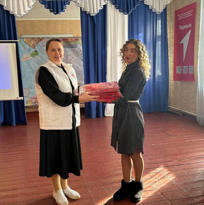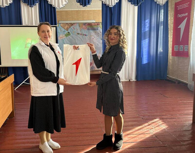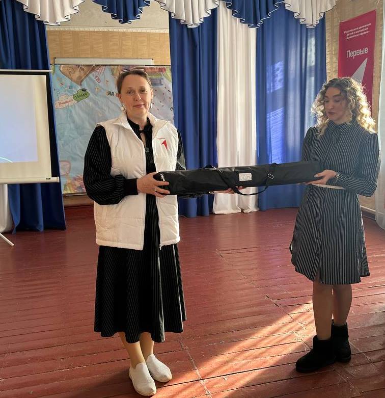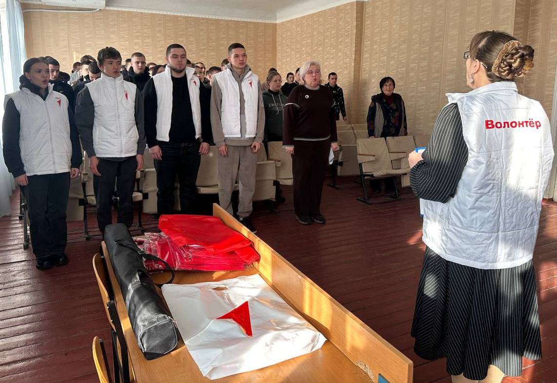 Кроме индивидуальных наград, В.А. Белявская передала техникуму символичные подарки: фирменные футболки, оригинальный стенд и яркий баннер, подчеркивающие значимость объединения молодёжи вокруг общих целей и ценностей.