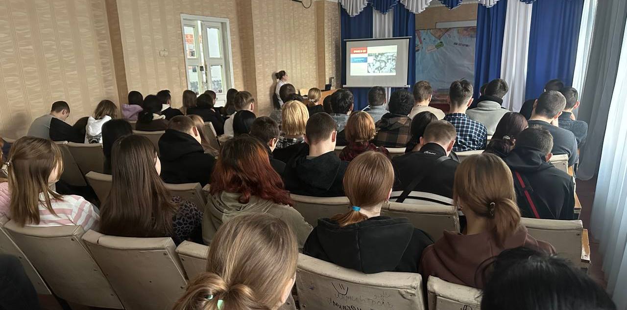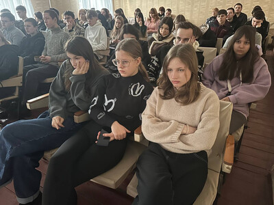 Студенты внимательно слушали рассказ о героизме защитников Родины, проявленном в ходе ожесточенных боев. Молодые люди погрузились в атмосферу тех далеких лет, просмотрев документальный фильм «Великая война. Сталинград».