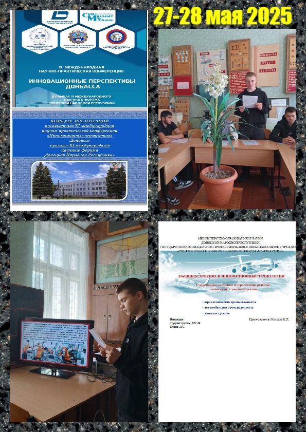 27-28 мая в техникуме прошли запланированные мероприятия – круглый стол: «Особенности современного машиностроительного производства» и студенческий конкурс презентаций «Применение новых конструкционных материалов. Инновационные исследования», посвященные XI международной научно-практической конференции «Инновационные перспективы Донбасса в рамках XI международного научного форума Донецкой Народной Республики».