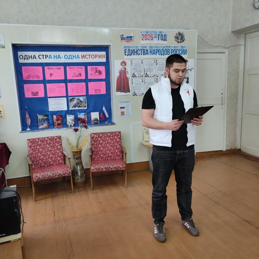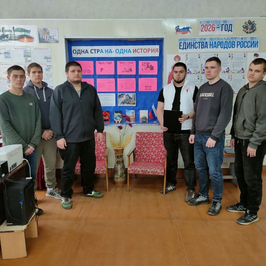 Главной целью информационного часа стало сохранение исторической памяти и уважения к прошлому родного края. Провел мероприятие заместитель Председателя Движения Первых техникума Константин Зеленский.